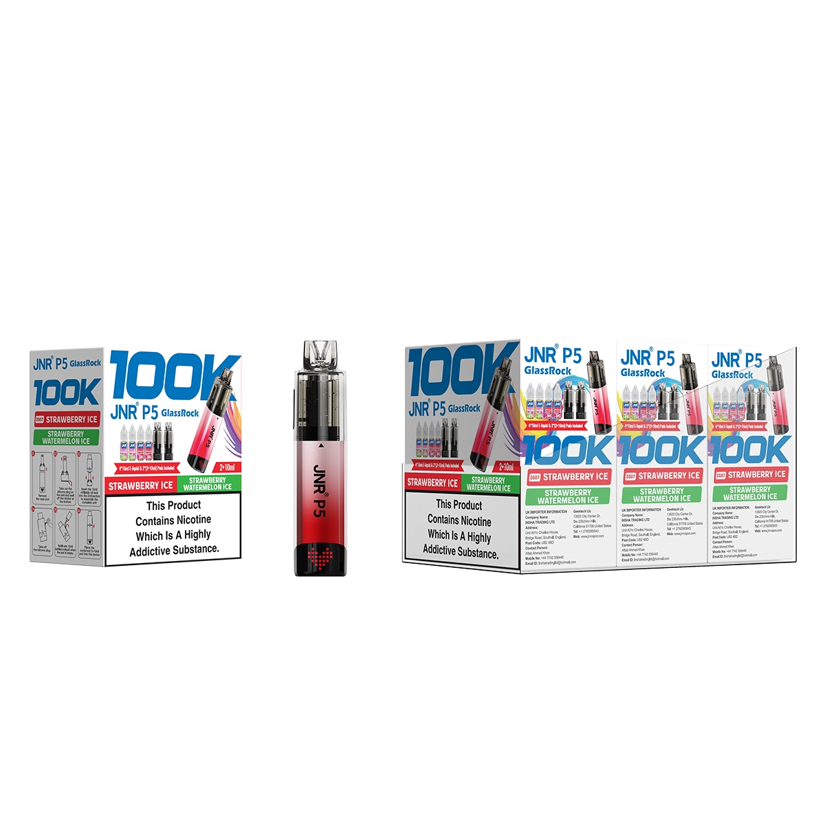 Strawberry Ice | JNR Vape P5 GlassRock 100K Puffs Kit - Refillable & Replaceable Pod Vape